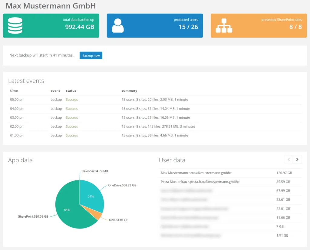 Unsere Cloud-Backup-Lösung ist speziell darauf ausgelegt, die Daten von Google Workspace und Microsoft 365 sicher und automatisch in der Cloud zu sichern. Für unsere Backuplösung ist keine spezielle Hardware erforderlich und sorgt für eine nahtlose Sicherung zwischen beiden Systemen und sorgt für eine zuverlässige Datensicherung. Die Kosten bleiben dabei stets transparent und es gibt keine langfristigen Verpflichtungen. Höchste Sicherheit und ein zuverlässiger Support sind zentrale Bestandteile unseres Angebots.